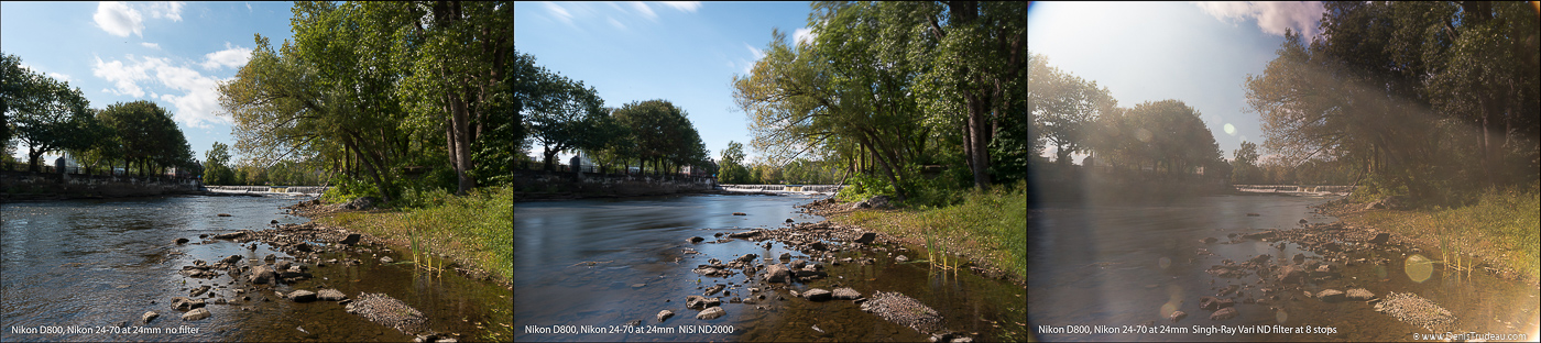 Après quelques recherches, je me suis procuré un filtre ND Singhray Vari ND ( vari pour variable). Ce filtre est reconnu comme le nec plus ultra des filtres ND et est utilisé par plusieurs grand nom de la photo de nature, et en effet il est très bien, mais poussé à fond (8steps), se fait sentir un manque de contraste et parfois un espèce de phénomène en forme de croix se forme dans l’image, ruinant bien entendu la qualité de cette dernière. Autre défaut, bien que j’ai la version mince, un vignettage évident se fait sentir sur ma Nikon 24-70mm f2.8, quand utilisé à la focale de 24mm, et qui parle de photo de paysage on parle de grand angle. Donc j’ai commencé à délaisser ce filtre qui ne me donne pas entièrement satisfaction étant donné ses limitations.